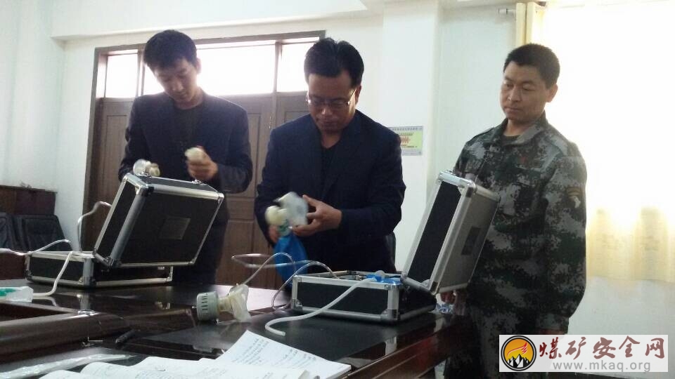 圖為陝煤建司第二期兼職救護隊瑞能學員進行儀器現場操作