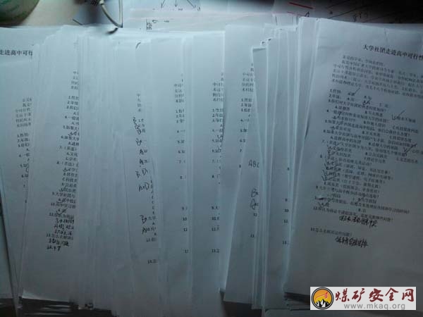 這次主要問卷發給了鄭集中學高一與高二的學生,問卷從他們對大學社團的熟悉程度,對大學社團的歡迎程度,大學社團對學習的影響,大學社團和高中社團的區別等問題進行提問。這些問題可以較為全麵地反映出這些應屆高中生對大學社團的態度。問卷現場顯得十分熱鬧,大家對這個項目表現出了很濃厚的興趣,並不時地向李寧同學提出自己的疑問,李寧同學詳細地給他們一一解答。很快,500份問卷就完成了填寫和回收,李寧同學分揀完畢,依依不舍地與同學們告別。