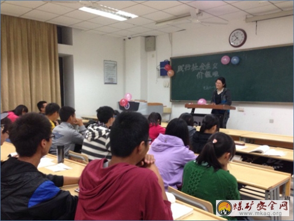 為深入貫徹黨的十八大和十八屆二中、三中全會精神,學習和貫徹習近平總書記重要講話的精神,中國礦業大學團委決定在今年9月至12月份舉辦“踐行核心價值觀,青春築夢我代言”微主題網絡文化活動。其主要目的在於增強大學生的社會主義核心價值觀,培養青春向上的精神。管理學院積極響應號召,全院組織以班級為單位開展主題班會,讓大學生暢談自己對社會主義價值觀的理解以及如何踐行與弘揚。