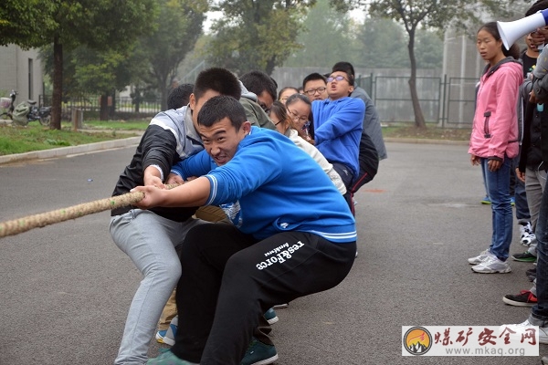 拔河比賽在第一運動場體育館西舉行,機電工程學院與應用技術學院同台對壘,每院代表隊員各15人,賽前,裁判宣布比賽規則,此次比賽采用三局兩勝製,若前兩局兩隊各勝一局,則第三局采取擲硬幣的方法來決定哪一隊優先選擇場地。為了保證比賽公平,賽前雙方各派代表再次清點人數,大家捋起袖子,擺好姿勢,自信昂揚。當比賽的哨聲一響起,隊員們口中一起高呼著“一二一”,雙手緊握長繩,壓低重心,卯足了勁拚命向後拉,拉拉隊隊員也激動地大喊加油為自己的學院喝彩,一時間,號子聲,呐喊聲此起彼伏。最終,兩輪比賽過後,機電工程學院惜敗應用技術學院,但雖敗猶榮,機電學子並沒因此灰心喪氣。
