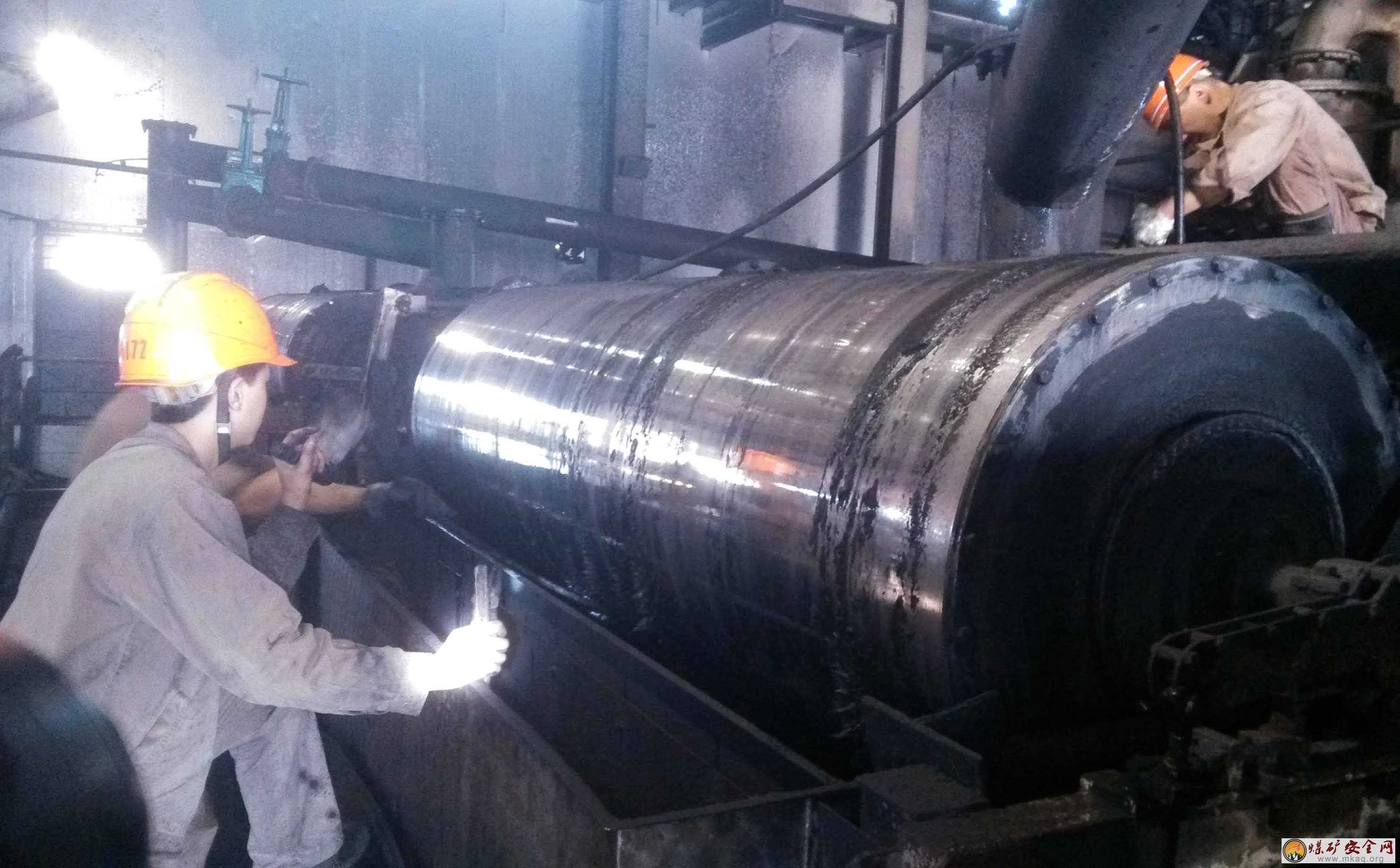圖為職工正在清理磁選機管路,以此降低介質損耗
