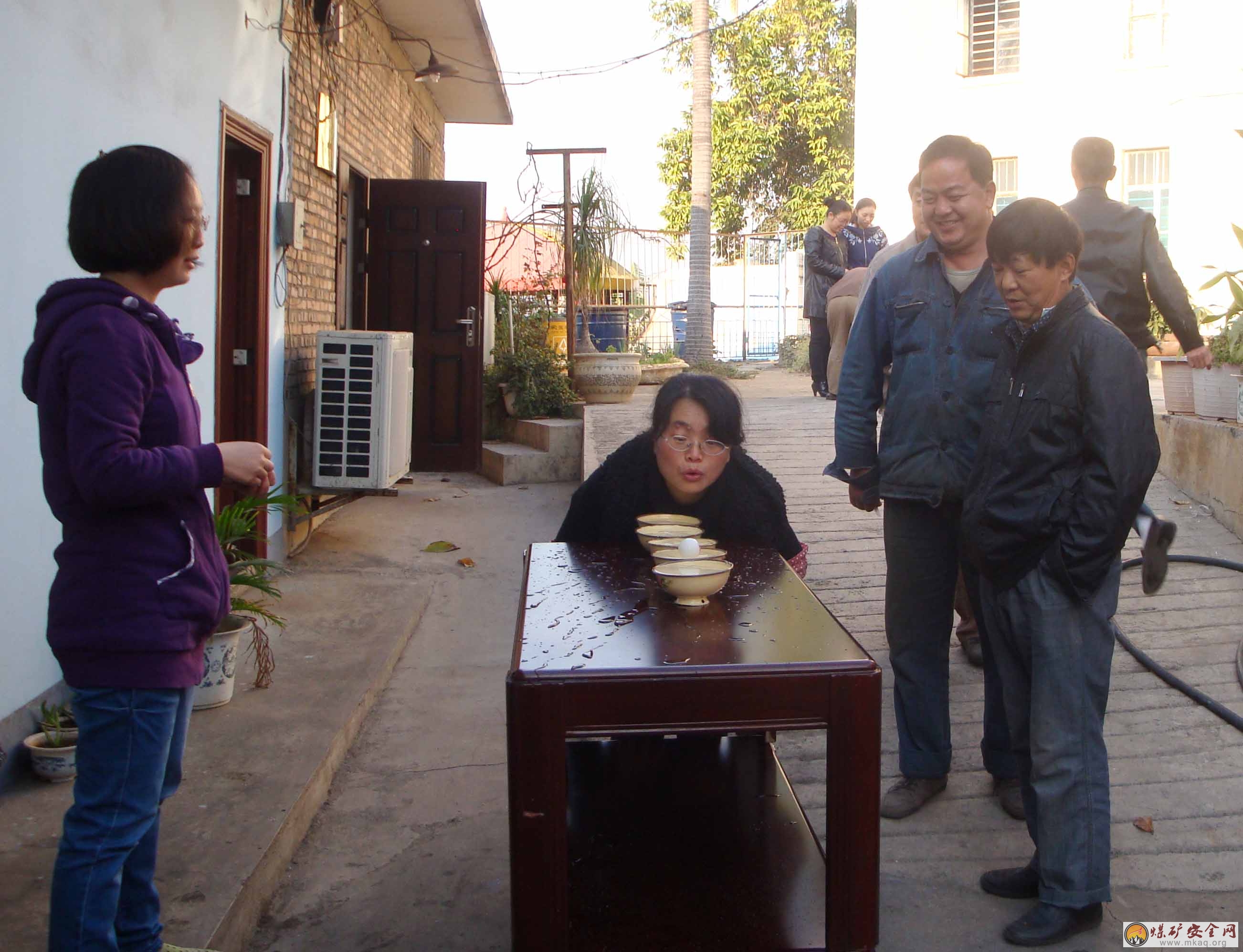 職工正在進行吹乒乓球活動