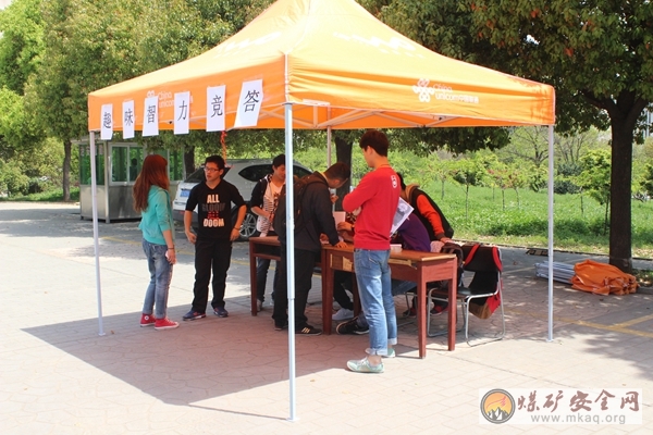 中午,學習部的負責人頂著太陽,早早的來到一食堂廣場布置活動現場。活動一開始,便吸引了許多同學們的目光,並且,在同學們的悉心介紹下,許多同學前來谘詢參與活動。活動進行中,工作人員會隨機抽取若幹題目,讓參賽同學回答,答對題目最多的幾位同學,可直接進入決賽。