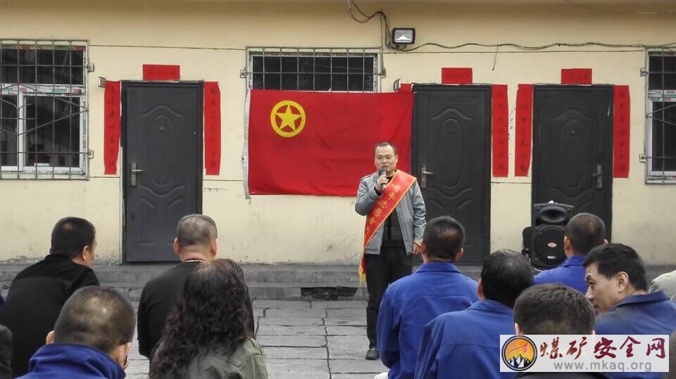 案例宣講進班前”活動中的一幕,該礦宣講人員正結合安全02manbetx.com