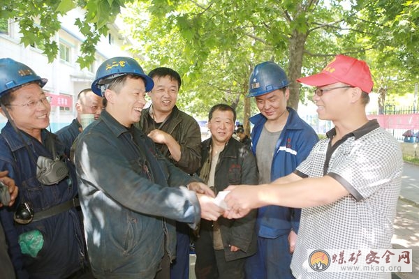 請問“依法辦礦、依法管礦、依法治理安全是我國煤礦安全治理的基本思路。正確還是錯誤?”“對。”恭喜你三次回答正確,獎勵你一份安全小禮品。”“師傅辛苦了,請喝一杯熱茶。”在下石節礦井口的安全問答現場,青年誌願者與一線職工的一問一答場麵熱烈,新穎的安全教育形式不僅起到了貫徹法製觀念、普及安全知識,弘揚安全文化的良好效果,而且深受一線職工歡迎,全麵唱響了企業科學發展、安全發展主旋律。
