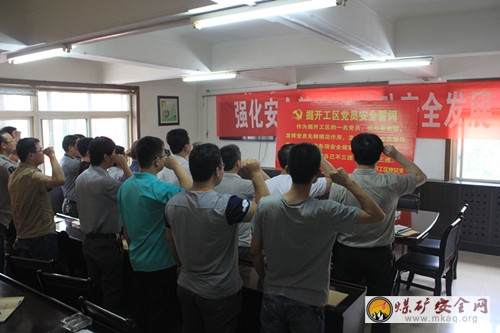 掘開工區黨總支組織黨員進行安全宣誓,意在全國安全月活動中,進一步增強黨員在安全生活中,更好地發揮黨員的先鋒模範作用、黨支部的戰鬥堡壘作用,強化黨管安全的責任意識。