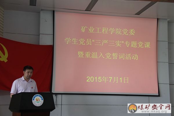 7月1日,值建黨94周年之際,礦業學院黨委在礦業學院樓A604報告廳舉辦學生黨員“三嚴三實”專題黨課暨重溫入黨誓詞活動。