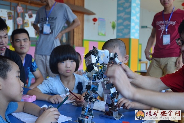 考慮到天氣炎熱,以及孩子可能需要午睡等方麵的原因,青協的同學們於下午3點半時到達的啟聰聾啞兒童康複中心,並受到了院長和孩子們的熱情接待。由於青協的同學們上午已經來過了啟聰,孩子們見到青協的同學們時沒有上午開始的時候那樣的拘束了,見到大家都十分親熱。為了全麵開發孩子們各方麵的能力,青協同學們帶來了許多的自製的玩具,其中包括曾經的機電學院學長們參加機器人大賽時使用的舊機器人、在打印店打印的動畫圖片再剪成小塊所組成的拚圖和一些用來教孩子折紙的廢舊傳單紙。孩子們都表現的十分活躍,對於機器人的操作很快就能夠掌握,他們的拚圖技巧也顯得很高超,而折紙活動更是體現出了他們充分的想象力,折出來的作品五花八門,有小紙船,有小青蛙,有小花,活靈活現,巧奪天工,十分有趣。