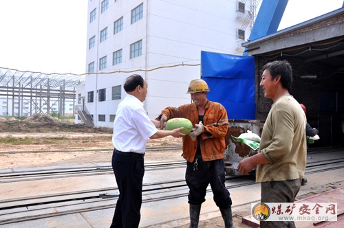 進入三伏天氣以來,酷暑難耐。為切實做好防暑降溫工作,保障職工身體健康,鼓舞職工士氣,陝煤澄合西卓煤礦黨政領導班子於7月21日對地麵工作人員進行了走訪慰問,為他們發放了西瓜、茶葉、白糖等降暑物品,將絲絲情意送到了職工的心中。