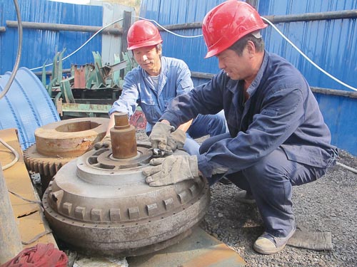 臨近中午12點,還沒吃午飯的孫兆海卻急著去見他的“夥計”。在提升段巡檢隊硫化組工作多年,他深知這些老“夥計”作業辛苦,隻有精心地清理和保養,才能延長它們的使用壽命。於是,每天利用午休時間,即使不吃飯,他也要先把角磨機的軸承、碳刷等配件檢查一遍,如果發現哪個配件有損耗,則立即進行維修或更換,保證設備正常運轉。
