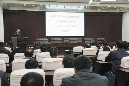 本報訊 特約通訊員李娜攝影報道 近日,西露天礦按照集團公司黨委的統一安排部署,組織礦、段兩級班子、黨員幹部等100餘人在撫順煤礦博物館會議室觀看了電視專題片——《人民的好幹部張鳴岐》。在一個半小時的觀影中,全體黨員幹部聚精會神,用心感悟,每每到了動情之處,大家眼中都泛著淚花。他們紛紛表示,要以張鳴岐同誌的精神作為鏡子,對照自身工作,找差距、找不足,切實地改進工作作風,敢於擔當,主動作為,狠抓落實,堅持以嚴的精神、實的作風,積極地投身到礦山經濟發展建設中去。