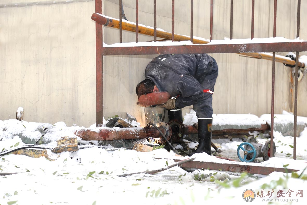 通訊員(宋根順)11月24日,冀中能源峰峰集團萬年礦服務科車間工會組織職工冒雪檢修維護暖氣管路,為職工公寓供暖提供了保障。