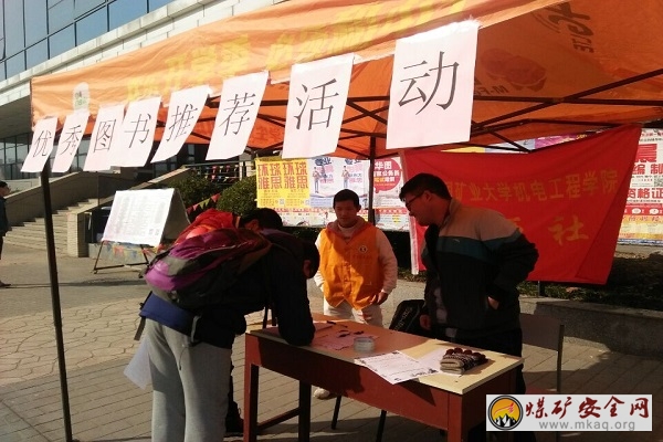 為構建學習型校園,進一步加強優秀讀物推薦,營造濃鬱的學習氛圍,11月28日上午,機電工程學院思源社於一食堂廣場舉辦了“優秀書籍推薦活動”。此次活動由學生服務總隊主辦,機電工程學院和文法學院承辦。