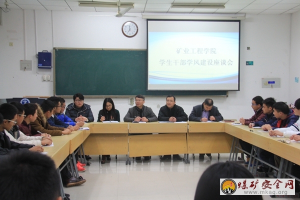 為進一步了解學生的思想動態和學風建設中存在的問題,推動學風建設紮實、深入開展,12月1日晚,礦業學院在博學4樓B104教室召開學生幹部學風建設座談會。院黨委書記張東升、黨委副書記暢軍亮、全體專兼職輔導員及學生幹部代表參加了此次座談會。