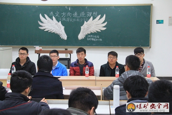 在班級團支書的主持下,交流會正式開始。5名發展方向不同的優秀學長分享了自己的求學經驗,並且向大家提出了合理的建議。他們告誡在座學生要認清自己、以學習為重點,確定自己的發展方向,並提前做好準備來增加自己的競爭力。同時,采礦卓越13-2班的同學們也根據自身情況主動向師兄們請教問題,得到了師兄們耐心的解答。