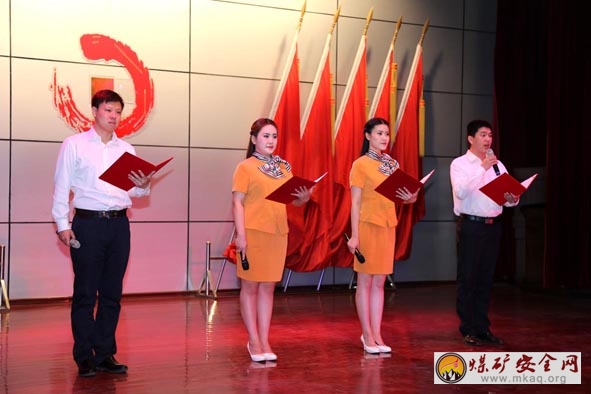 表彰會結束,來自基層的青年礦工表演了自編、自演的安全快板、舞蹈、歌曲、小品等節目,展現了青年礦工在新形勢下勇於擔當、銳意創新、奮發有為、甘於奉獻的精神風貌。圖為礦工在表演配樂朗誦《青年責任 擔當》時的情景。