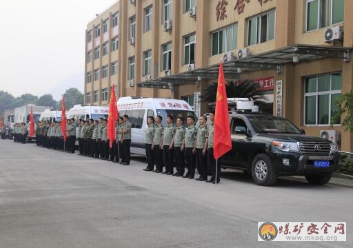 4月5日清晨7點,來自芙蓉公司、廣旺公司、廣能公司、達竹公司救援隊組成的“提升班”學員由救消大隊大隊長苟忠、總工程師陳益能帶隊從芙蓉公司救消大隊基地出發到宜賓市屏山縣參加防震救災綜合演練礦山救援預演。