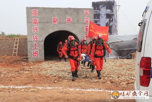 圖為國家應急救援芙蓉隊成功將被困傷員從模擬井巷救出。