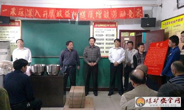 通訊員(宋根順)四月份,峰峰集團萬年礦工會積極開展“效益杯”勞動競賽。該礦一采區在132154工作麵,克服了局部頂板破碎、煤壁片幫、支架傾斜等諸多困難,安全生產原煤121988噸,超7988噸,再次展現了1301采煤隊唯旗必奪、勇爭先鋒的風采,為該礦二季度開展安全生產勞動競賽,實現時間任務雙過半目標做出了積極貢獻,礦工會為1301采煤隊送去了賀信和獎品。圖為礦工會主席楊國順(中)宣讀賀信時的情景。