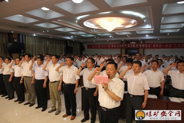 暨2016年半年工作會。該礦在家的黨政班子與各機關部室全體共產黨員一同參加會議。