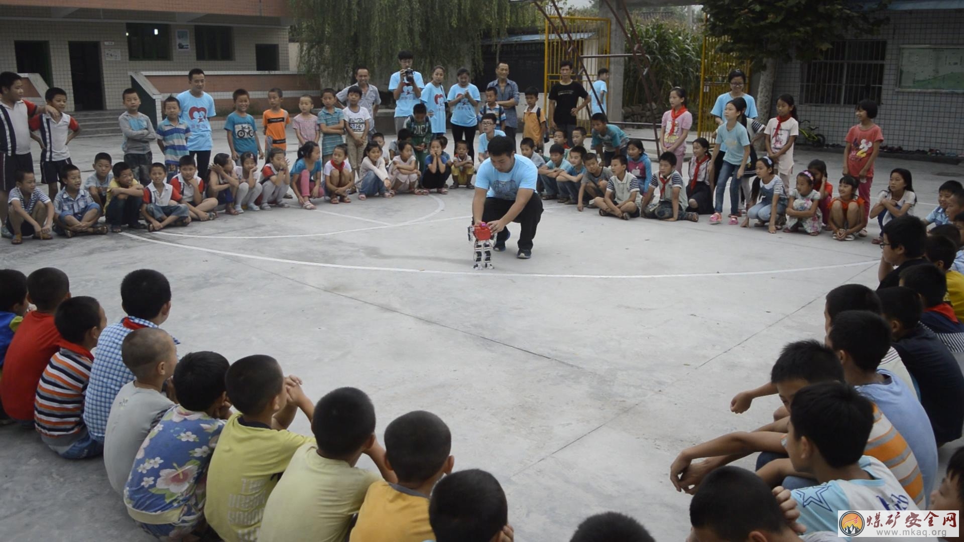 活動現場,師生群眾早早來到紅旗小學操場上,有序地圍坐在實踐團成員的四周,等待實踐團成員為他們展示科技作品和宣講網絡知識。在現場,實踐團成員首先向大家展示了一部自製的機器人,憨態可掬的機器人在接收到操作指令後,歡快地跳起了小蘋果、打起了太極拳、做起了俯臥撐、翻起了跟頭兒、耍起了中華武術……機器人的精彩表演博得在場所有人的陣陣掌聲,活動現場充滿了嘖嘖讚歎和歡聲笑語。接下來,實踐團成員還向學生們現場展示了筆記本電腦的拆卸與組裝,細致地為孩子們講解電腦的每一個零部件及其用途。實踐團成員還運用新媒體手段,麵向師生們開展了“互聯網+教育”知識傳播和理念宣傳活動,向當地群眾普及網絡信息化建設的新技術和新成果。