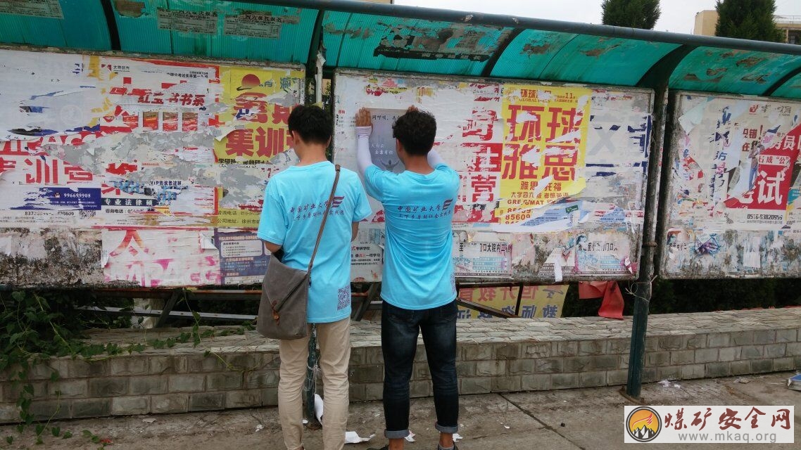 上午9點,全員在杏二樓下集合,做了大致的分工。然後先在礦大南湖校區內公告欄進行海報張貼並發放傳單。隨後,全員乘校車抵達礦大文昌校區,也相應的進行了海報張貼和發放傳單的活動。在發放宣傳單的同時還向大家講述保護空氣的重要性。最後,全員走進市區各街道,深入群眾,積極宣傳,在市區內的公告欄進行海報張貼,呼籲市民共同保護空氣。此次活動持續時間較長,共張貼了海報100張,發放傳單1000張,活動效果明顯。