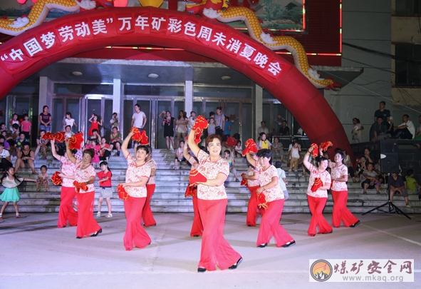 通訊員(宋根順)7月21日,峰峰集團萬年礦工會舉辦“中國夢 勞動美”彩色周末消夏晚會。來自基層車間職工自編自演的舞蹈、歌曲和安全快板等節目,受到了觀眾的歡迎,豐富了職工家屬的業餘文化生活。圖為演員在表演舞蹈《千紅萬紅滿堂紅》時的情景。