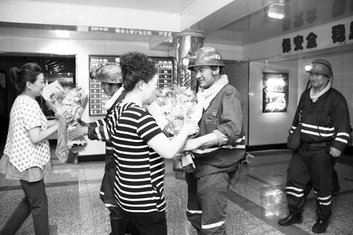 圖為員工家屬在井口為員工送“生日祝福”時的情景。