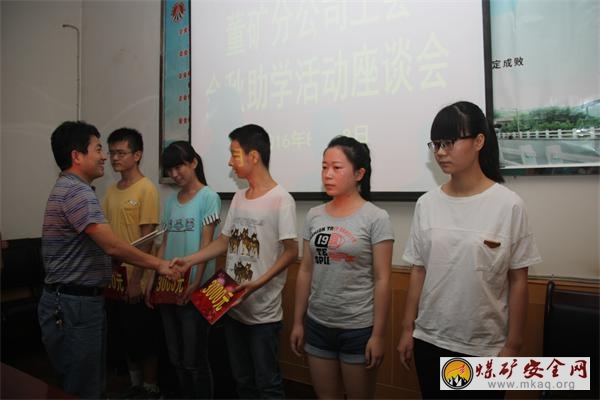 8月18日下午,澄合礦業董礦分公司工會召開2016年“金秋助學”座談會,給今年考上高等院校的困難職工子女和在讀困難大學生、困難高中新生發放了助學金8.6萬元,給他們送去了各級組織的關懷和溫暖。