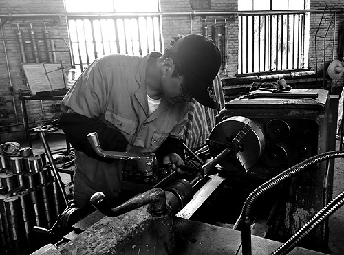 圖為員工正在檢測校對修複完畢的自翻車軸承螺栓時的情景。