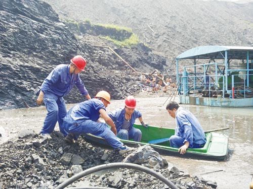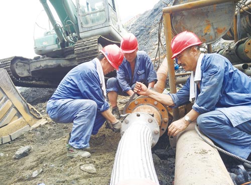 8月23日,節氣已至處暑,太陽依舊火辣辣地照在頭頂。此時,在西露天礦坑下搗排泵站工作現場,防排水段的幹部員工正忙得不可開交。