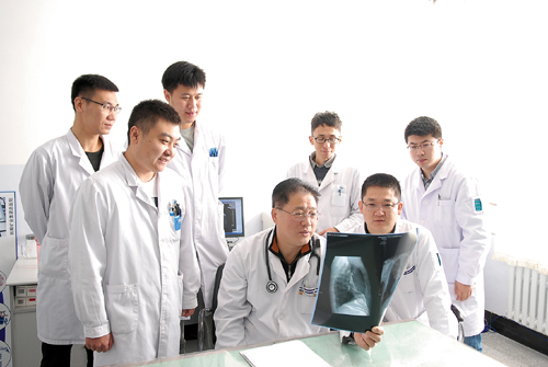 圖為高波帶領團隊看患者術後影像圖片時的情景。