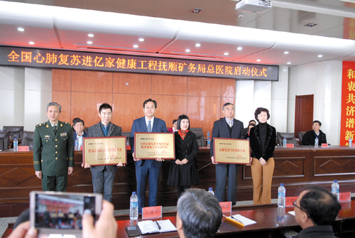11月9日上午,全國心肺複蘇普及進億家健康工程啟動暨撫順礦務局總醫院腹部心肺複蘇轉化應用基地成立儀式在撫礦總醫院大學術報告廳隆重舉行。中華醫學會科學普及部部長唐芹,中華醫學會科普分會、中國研究型醫院學會心肺複蘇專業委員會主委王立祥,解放軍總醫院教授沈洪,首都醫科大學教授張紅,中國研究型醫院學會心肺複蘇專業委員會副主委李靜,世界危重病醫學雜誌編輯部主任、解放軍總醫院教授馮麗潔等應邀出席了授牌儀式。市政府副秘書長李斌,市衛計委主任王文晶,市疾控中心主任周毅,撫礦集團公司副總經理侯景波等領導出席了本次儀式,撫順市各醫院應急辦主任、急診科負責人,各協作醫院院長、門急診醫生共計270餘人參加了本次活動。