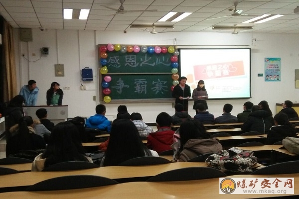 為了給同學們提供一次表達感恩之情的機會,喚醒大家的感恩之心,12月26日晚七點,由學生服務總隊主辦,學生服務總隊辦公室承辦,機電工程學院思源社和力建學院服務分隊等五個學院服務分隊協辦的“感恩之心爭霸賽”決賽於博二A103舉行。學生服務總隊副主席褚洪傲,機電學院服務分隊隊長陳宏兵和其它學院服務分隊隊長擔任本次活動評委。
