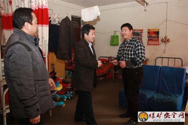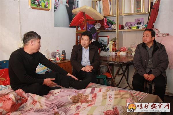 圖為董礦分公司工會主席朱洲鋒入戶為受傷職工送職工醫療互助險的保險賠付款。