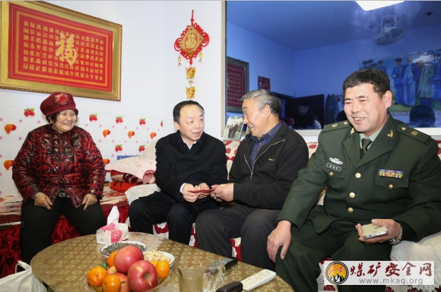 春節前夕,萬年礦黨政工組織“2017年春節送溫暖”活動。礦領導頂著寒風到大病醫療職工、特困職工、軍屬等家中走訪慰問,送去了米、麵、油慰問品和新春祝福,把黨的關懷和企業的關愛送到了職困難工家中,使困難職工感受到了企業大家庭的溫暖。圖為礦黨委副書記、工會主席王孝峰(左二)在軍屬李守業家中慰問時的情景。