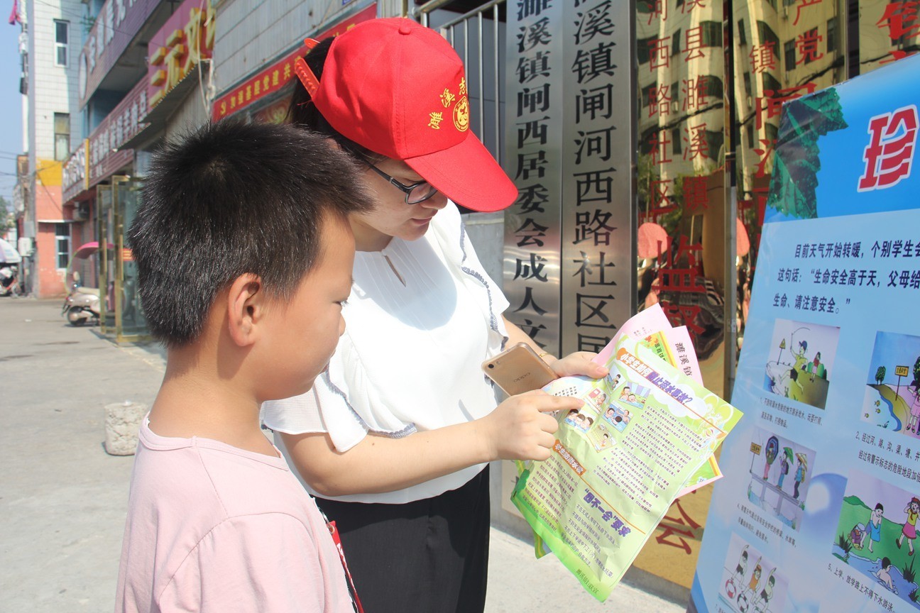 7月11日,安徽省濉溪縣濉溪鎮誌願服務隊到村、社區等分發防溺水安全教育宣傳單。