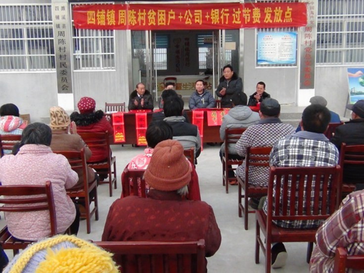 四鋪鎮周陳村位於303省道兩側,緊鄰三鋪村、四鋪村。現有23個村民小組,1100戶,4306人,村貧困人口117戶、332人。路達公司總經理劉曉峰多次與村兩委溝通,結合村裏的基本情況、貧困人口、貧困戶和貧困原因(一是村民文化水平較低;二是產業結構單一;三是基礎設施較差;四是老弱病殘比例較大;五是村集體無經濟收入),研究村的脫貧思路和具體辦法。根據周陳村村《精準脫貧規劃》,主要從以下幾方麵著手開展幫扶工作:一是開展金融扶貧工程。創新發展理念,發揮大戶帶動作用,積極探索采取“農戶+公司+銀行”模式,采用農戶與公司合作入股,公司簽訂勞務合作協議方式,已於周雲、周大田、陳運水、周希文、牛孝先等33戶貧困戶簽訂協議,每戶每年有3000元的分紅,500元的過節費,增加了貧困戶的家庭收入,拓寬了貧困戶的收入來源。