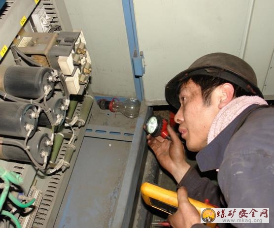 黨的十九大召開後,河南能源化工集團鶴煤三礦把學習十九大報告同安全生產向結合,努力提升經濟效益。圖為11月1日該礦機電一隊副隊長郭繼建在主井絞車房維修機電設備。