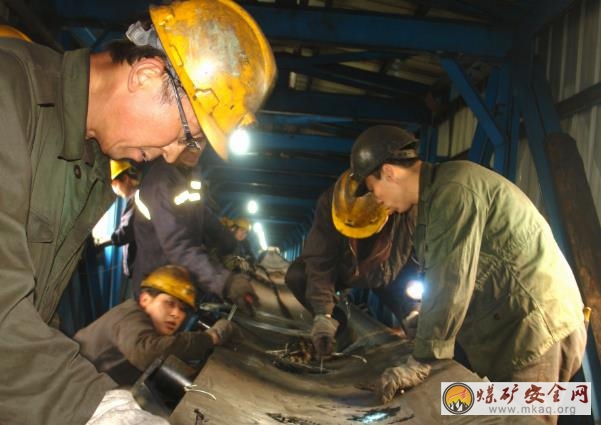 為確保設備安全運轉,河南能源化工集團鶴煤三礦開展安全生產大檢查活動,重點對井上下重點區域的安全狀況進行了全麵檢查。圖為12月18日,該礦職工在煤樓安裝皮帶。