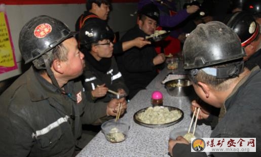 礦黨委書記張棟建親手把鞋墊,背心等生活用品一一送到下井員工的手中並囑咐他們一定要時刻保持警惕,注意安全。礦長渠貴君也一大早來到井口為員工包餃子,為員工送去溫暖。
