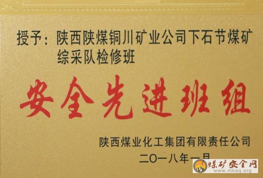下石節煤礦綜采隊檢修班榮膺陝煤集團安全先進班組殊榮