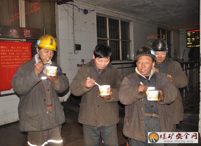 “夠了夠了,這麼冷的天,你們也挺辛苦的,走啦,我還得下井進行瓦斯檢查,謝謝你們的餃子”。該礦通風區職工楊學才吃完最後一個餃子,道了一聲謝,拿上工具包,轉過身朝著井口檢身口走去。