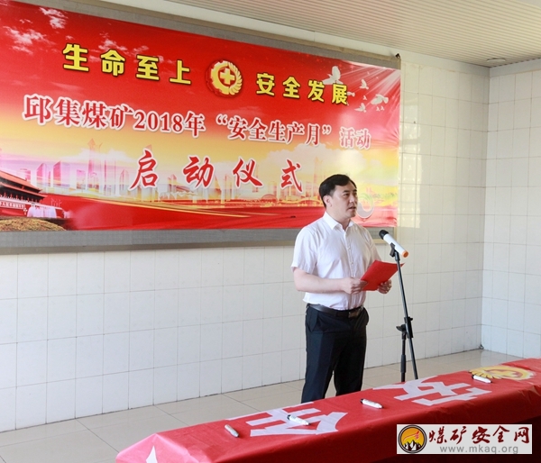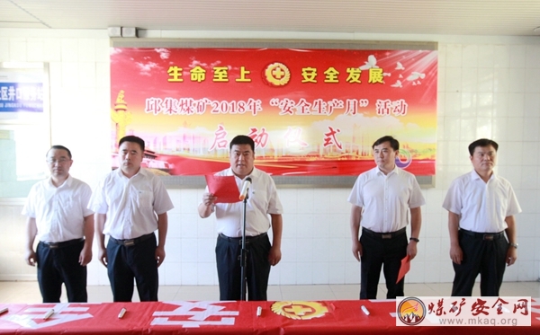 6月1日,邱集煤礦在副井口等候室舉辦2018年“安全生產月”活動啟動儀式。該礦黨委書記、礦長莊又軍出席啟動儀式並講話,黨委委員、副礦長薛峰、李東、付士軍、王傳峰出席啟動儀式,各單位負責人、采掘工區職工參加儀式,李東主持啟動儀式。