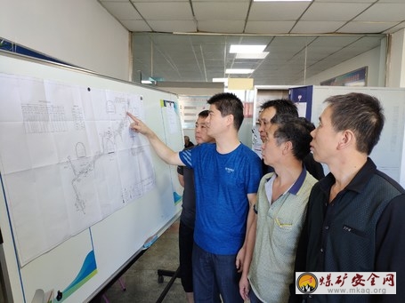 陽煤集團二礦借助“幹部上講台,培訓到現場”的平台優勢,不斷創新培訓形式,積極利用班後會、“二·五”安全活動時間,開展操作技能和質量標準化知識培訓,切實提升職工技能素質。圖為運輸工區隊幹正在給職工講解井下運輸係統圖。(任鎖生 攝影報道)