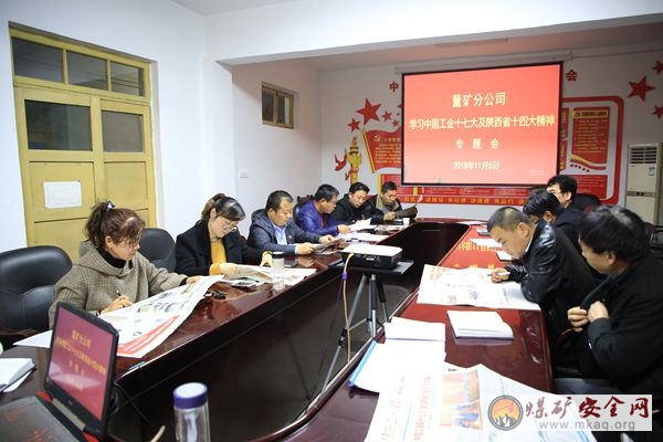 11月5日,澄合董礦分公司工會組織基層工會主席召開工會主席例會,傳達學習貫徹中國工會十七大及陝西省工會十四大會議精神,學習習近平總書記講話的重要內容,學習中共中央政治局常委、中央書記處書記王滬寧的致辭,學習全國人大常委會副委員長、中華全國總工會主席王東明所作的工作報告;學習了省委書記胡和平,全國總工會黨組書記、副主席李玉賦在省總工會第十四次代表大會會議上的講話精神,及新當選的省總工會主席郭大為的講話要求。