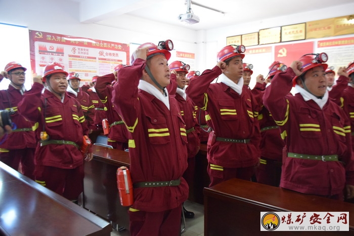 措施;六是對當班安全注意事項進行提問回顧,麵對“全家福”照片牆進行安全宣誓,引導職工牢記安全,做好自保互保;七是進行井口“三位一體”手指口述安全確認,再次檢查職工精神狀態和勞保用品穿戴情況,做到萬無一失。