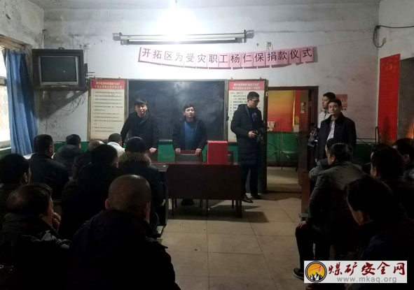 12月22日,峰峰集團萬年礦開拓區車間工會積極動員全區幹部職工伸出援助之手,奉獻愛心,為受災職工楊仁保捐款。本次活動共收到捐款2150元,沒到場的職工也通過其他方式進行了捐款700元,向工友獻出了愛心。儀式結束後,組織者第一時間將捐款資金交到楊仁保手中。