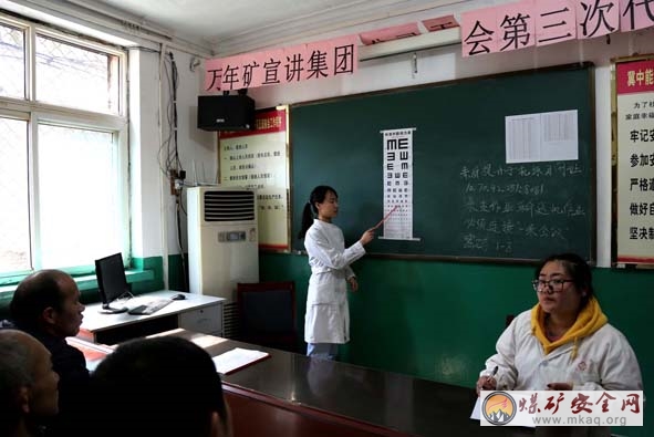 3月11日,萬年礦工會為了把“六反六查一確保”活動引向深入,組織醫務人員到一采區、二采區、三采區等12個單位,為464名職工測試視力,並要求單位做好職工視力測試登記表,建立職工視力健康檔案,確保職工身體健康。