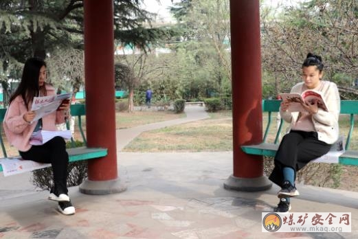 春天來臨,櫻花鳥語,河南能源化工集團鶴煤三礦許多員工走出戶外,手捧書本,如饑似渴的學習新知識。圖為3月29日該礦兩名員工在區隊辦公樓前華亭學習的場景。